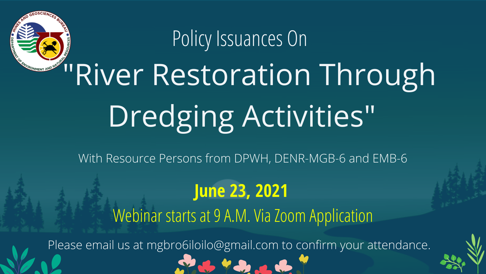 Iloilo City – The DENR, Mines and Geosciences Bureau Regional Office 6 (MGB-6) will hold a webinar on June 23, 2021 to discuss government policy issuances governing River Restoration Through Dredging Activities.